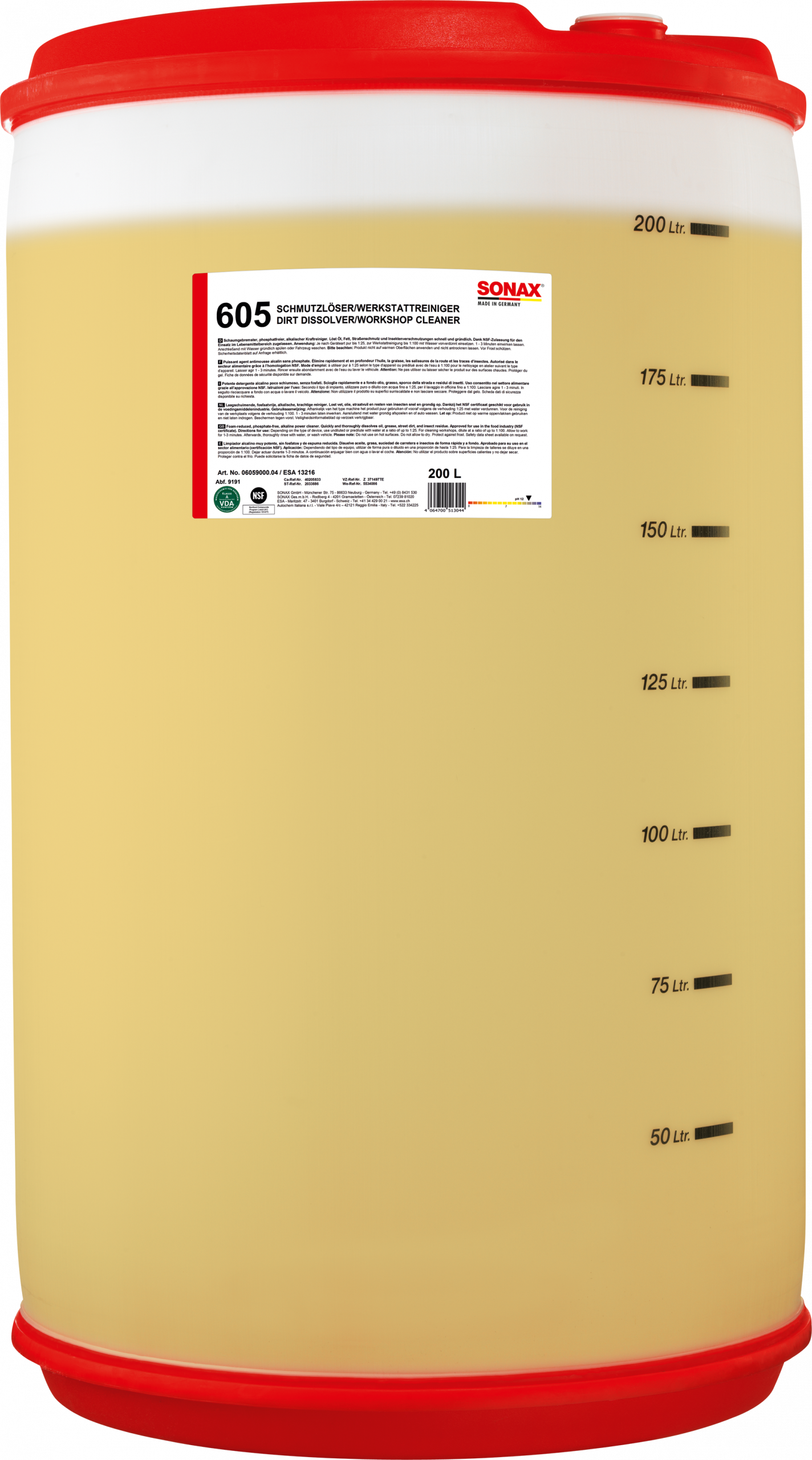 Je nach Geräteart 1:1 bis 1:25, zur Werkstattreinigung bis 1:100 mit Wasser vorverdünnt einsetzen.